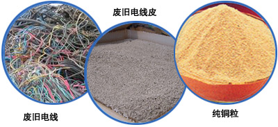 2、先把電線破碎成的粒狀,再把破碎銅粒自動流入電線銅粉分離震動篩網(wǎng)過濾,最后,做出了銅粒,塑料,電線皮分離效果。